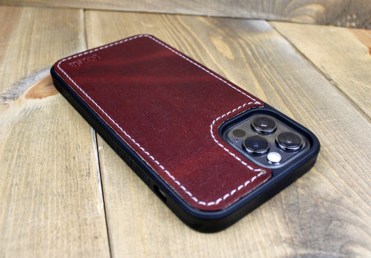Our iPhone case collection is handcrafted from the very high quality full grain Wickett & Craig Traditional Harness Leather. Wickett & Craig is a world premiere tannery that has been around since 1867, operating out of Pennsylvania. You can customize your iPhone case by picking the leather color, thread color, and adding your own personalization.