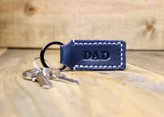Navy Blue Leather Keychain