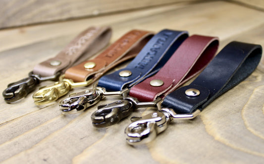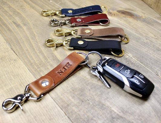 Our custom leather keychains each have unique characteristics that create a special accessory for yourself or for a one-of-a-kind gift. We handcraft our keychains with traditional and modern styles, so you can choose exactly what fits your style.