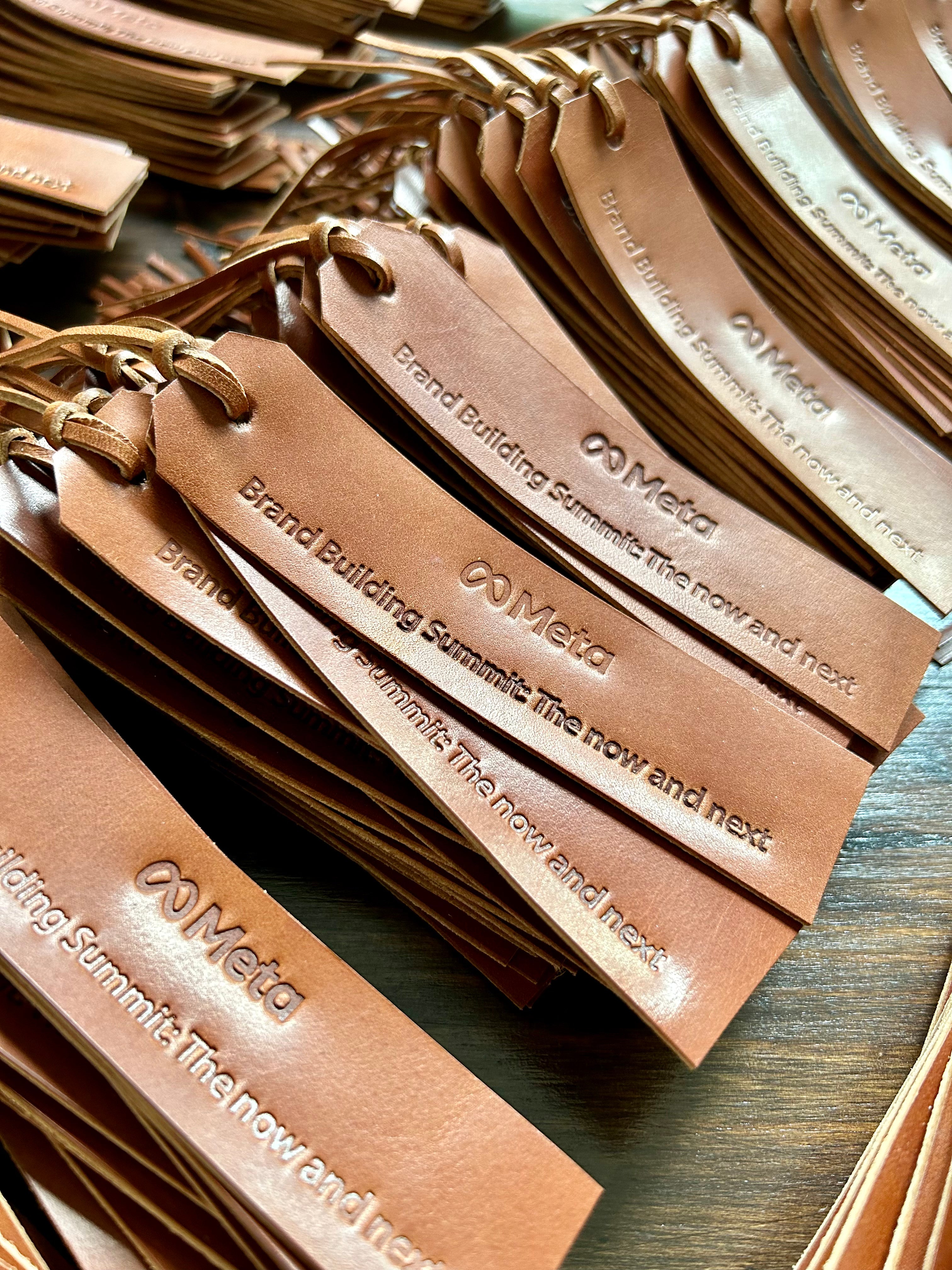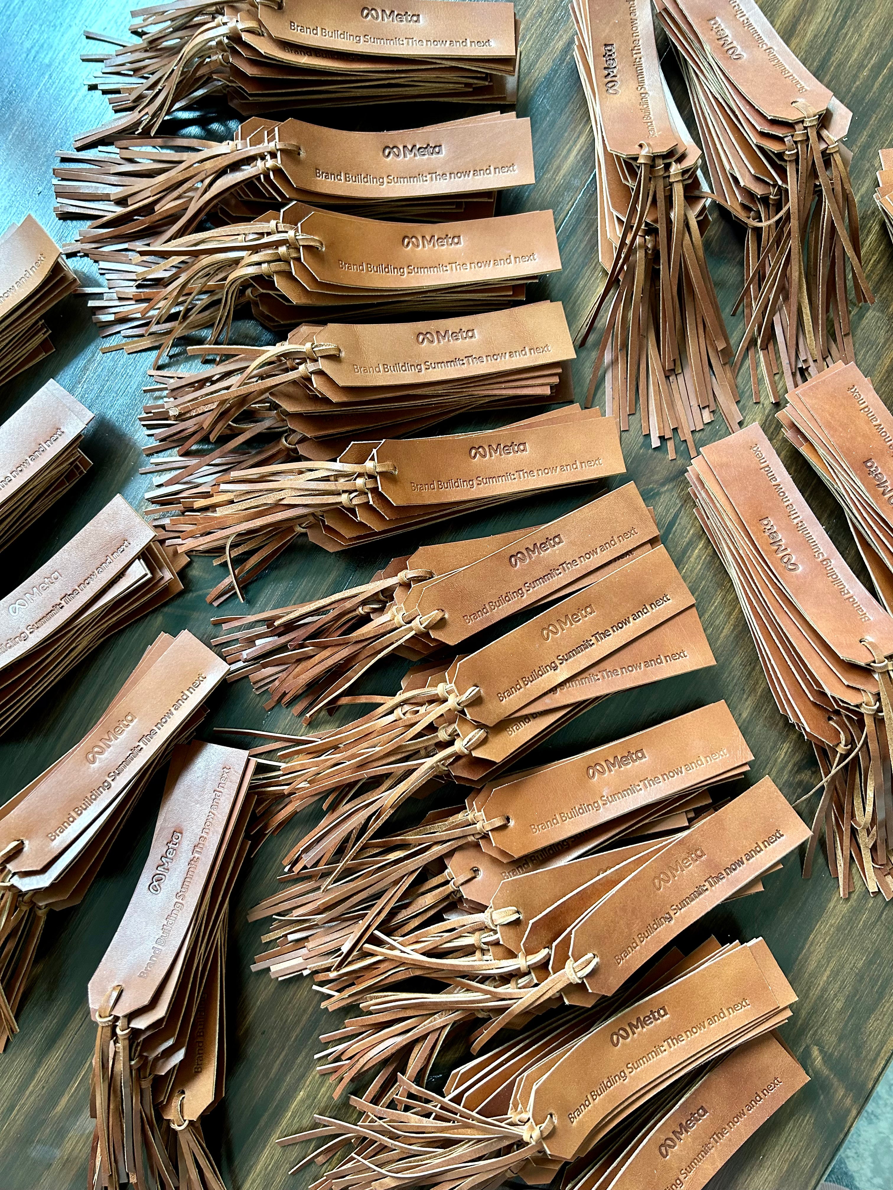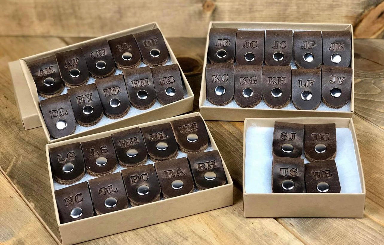 If you would like your logo to be stamped on the leather product, we can have a stamp made. We work with another small business to get a brass stamp created. After we use the brass stamp for your order, you can keep the stamp or we can hold on to it for you for the future.