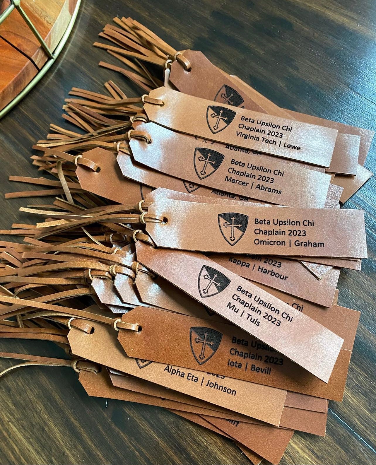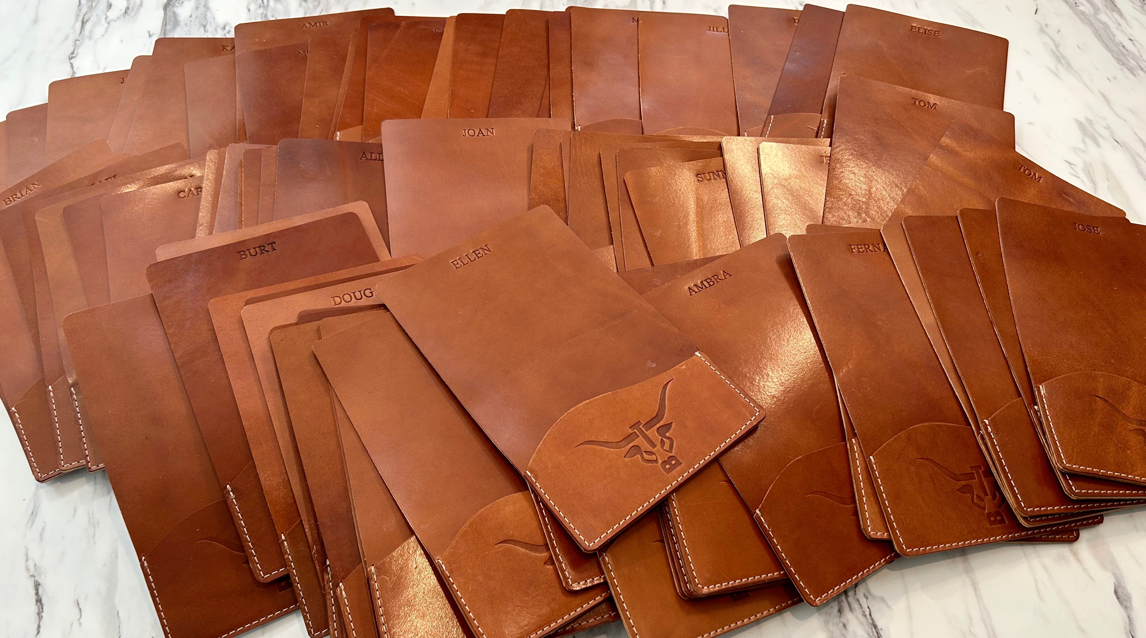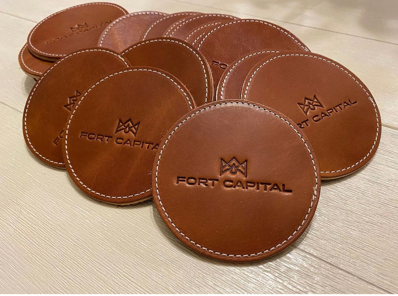If you would like your logo to be stamped on the leather product, we can have a stamp made. We work with another small business to get a brass stamp created. After we use the brass stamp for your order, you can keep the stamp or we can hold on to it for you for the future.