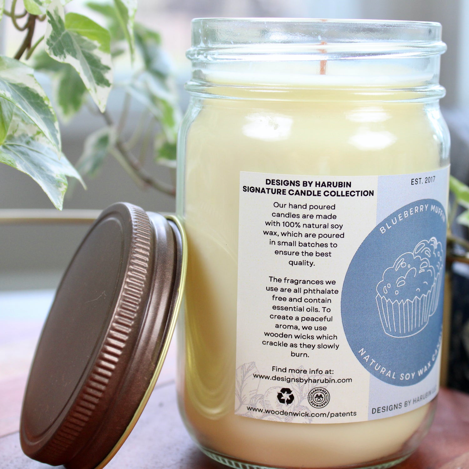 By using 100% natural soy wax and wooden wicks in our candles, we are able to create a slow burning candle that you can enjoy for longer.