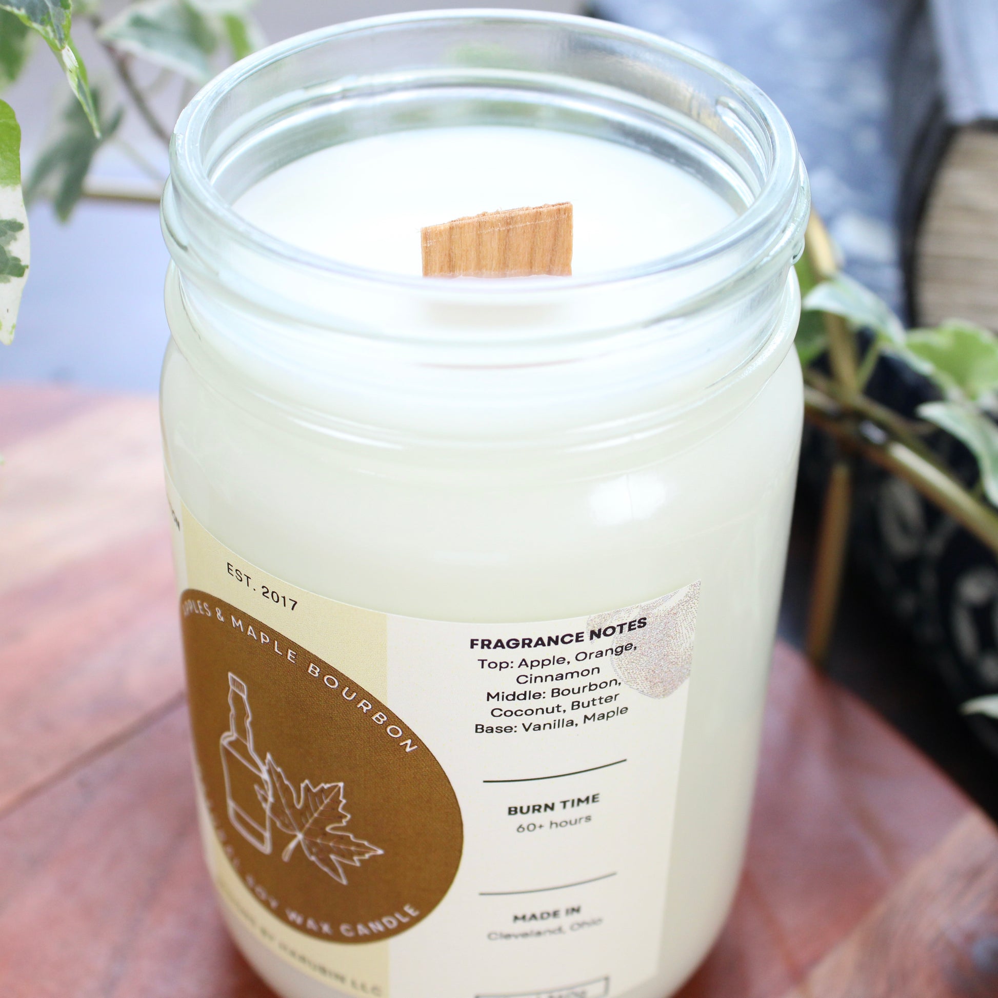 This Apples and Maple Bourbon scented candle gives off a very unique scent that consists of apples, cinnamon, and a slight hint of orange. Which is all based around the rich bourbon and sweet maple aroma. Our signature scented candle is made from all natural soy wax, which is eco-friendly, and made using wooden wicks. By using wooden wicks, they are able to burn clean and have a better scent throw throughout your home. They can also make a peaceful crackling sound when lite. Any fragrance we use is also phthalate free from CandleScience. Our candles can add a great touch to any room in your home!